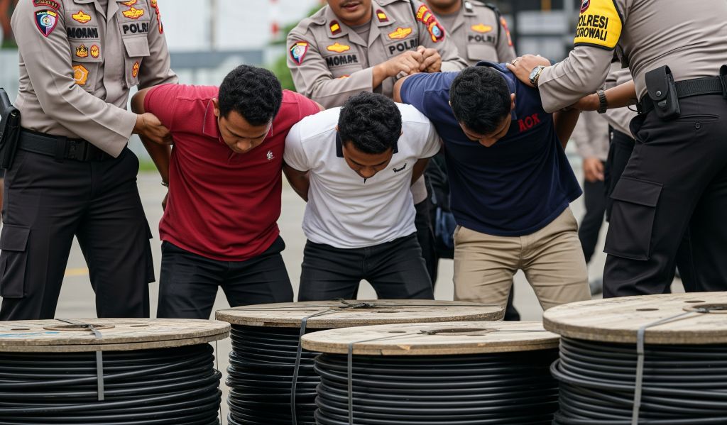 MOROWALI, KAIDAH.ID – Polres Morowali menangkap tiga terduga pelaku penjarahan aset PT IMIP pada Jumat, 8 Agustus 2025 malam. Mereka diamankan bersama barang bukti gulungan kabel tembaga berbentuk bobin atau roll besar.