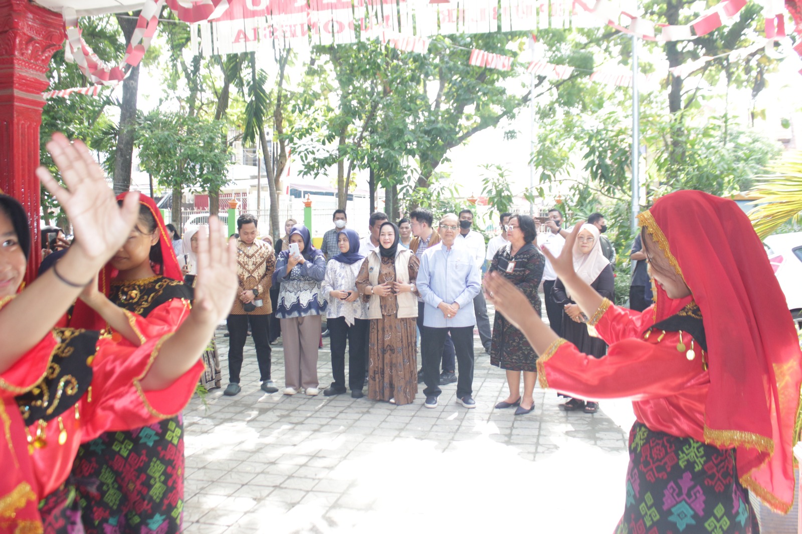 Kunjungan mantan Gubernur Sulawesi Tengah periode 2011-2021 itu disambut dengan Tari Mokambu, tarian tradisi Suku Kaili, oleh para siswi di halaman sekolah.