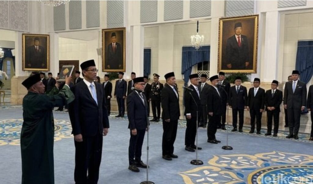 JAKARTA, KAIDAH.ID – Presiden Prabowo Subianto melakukan reshuffle Kabinet Merah Putih dengan merombak lima posisi menteri. Pelantikan digelar di Istana Kepresidenan Jakarta, Senin, 8 September 2025 sore.