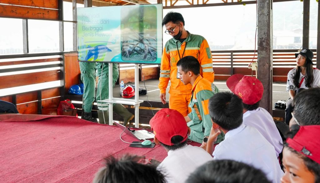 “Anak-anak belajar tidak hanya di kelas, tetapi juga memahami fungsi mangrove seperti mencegah intrusi air laut dan menyimpan karbon dioksida (CO2),” katanya.