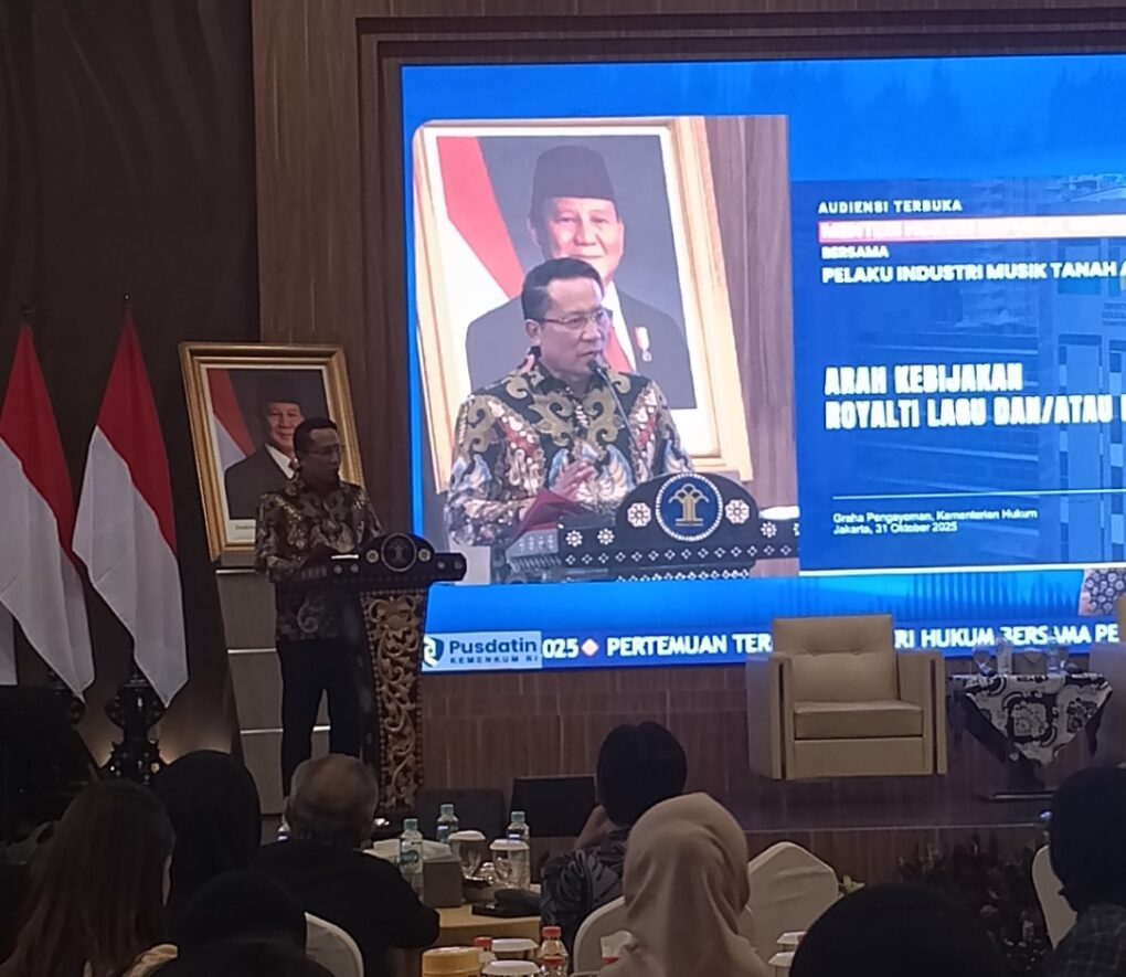 Menteri menyampaikan itu dalam Pertemuan Terbuka Menteri Hukum RI bersama Pelaku. Musik Nasional yang berlangsung di Graha Pengayoman Kementerian Hukum, Jl. Rasuna Said, Jakarta Selatan, Jumat, 31 Oktober 2025 siang.