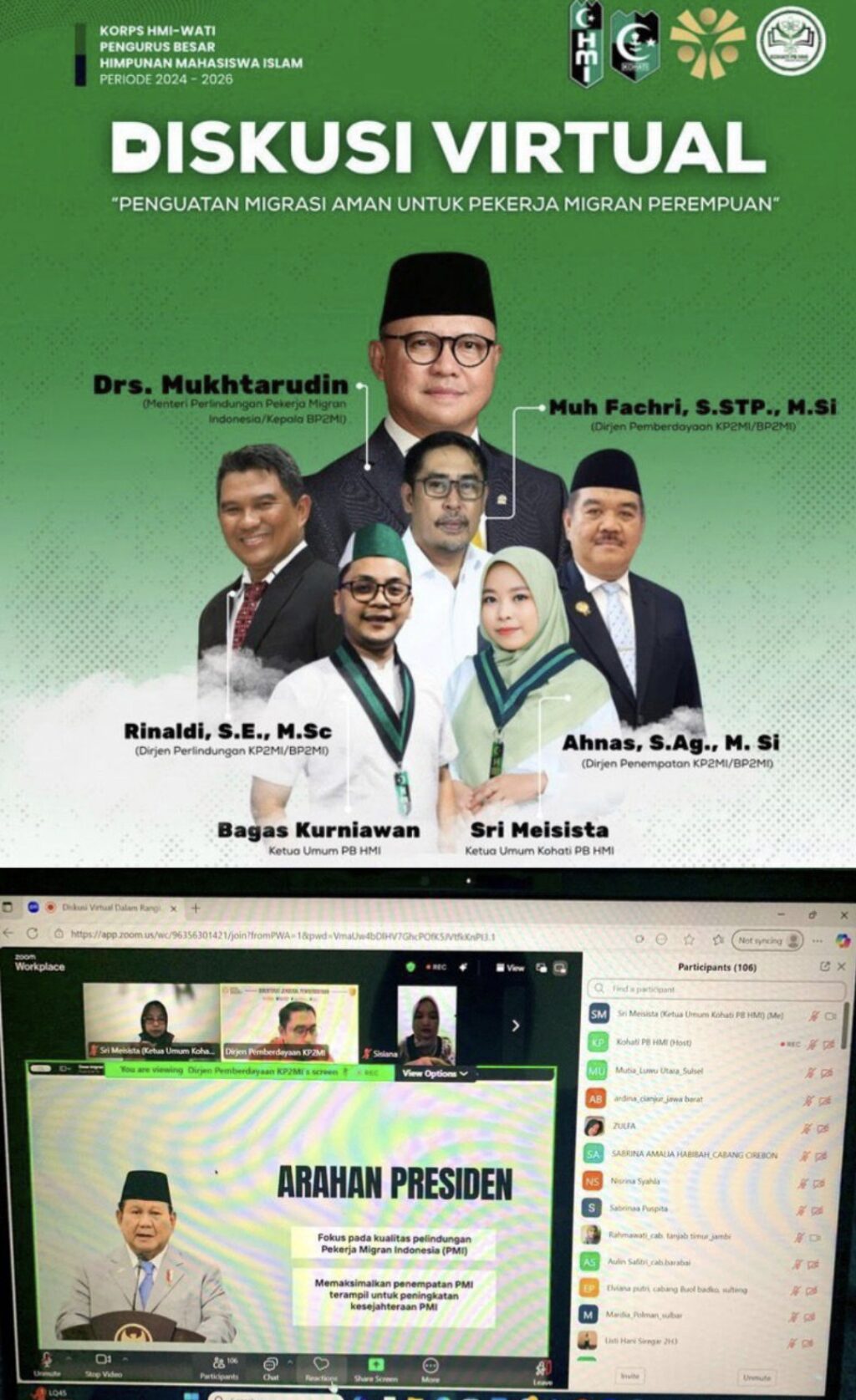 JAKARTA, KAIDAH.ID – Ketua Umum Kohati PB HMI, Sri Meisista, menegaskan pentingnya migrasi aman bagi pekerja migran perempuan. Ia menyampaikan itu dalam Diskusi Virtual bertema “Penguatan Migrasi Aman untuk Pekerja Migran Perempuan” yang digelar pada 14–15 November 2025. Perlindungan menyeluruh sebagai hak yang wajib dijamin negara.