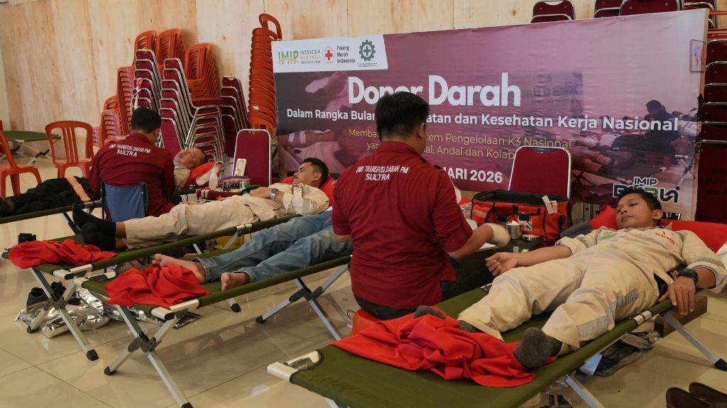 MOROWALI, KAIDAH.ID – PT Indonesia Morowali Industrial Park (IMIP) menggelar aksi donor darah dalam rangka peringatan Bulan Keselamatan dan Kesehatan Kerja Nasional (BK3N) 2026. Kegiatan tersebut dilaksanakan di Aula Serbaguna PT IMIP, Senin, 9 Februari 2026, dengan target pengumpulan sebanyak 480 kantong darah yang akan disalurkan melalui Palang Merah Indonesia (PMI) Kabupaten Morowali.